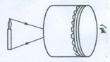 2、小刚按如图所示装置做小孔成像实验,如果在易拉罐底部开一个三角形的小孔,则他看见 (圆形光斑/三角形光斑/蜡焰的像)将蜡烛远离易拉罐,则小刚看见的 (光斑/像)变 。