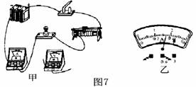 (2)连好电路闭合开关,移动变阻器滑片到某一点,电压表的示数为3V。要测量小灯泡的额定功率,还应将滑动变阻器滑片向 移动(填“左”、“右”);当电压示数为 V时,小灯泡正常发光,此时电流表的指针位置如图7乙所示,可得出小灯泡的额定功率