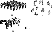 11.某老师在引导学生理解固体、液体和气体的微观结构时,带领学生做游戏,用人群的状态类比物体的状态.如图8所示甲、乙、丙三种情景分别对应的是 ( )
