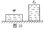 完全相同的甲、乙两个长方形容器,都装满水,如图10所示放置,则甲、乙两个容器底部受到水的压力F甲和F乙、压强P甲和P乙,它们的关系正确的是( )