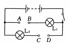 在图6的电路中,有A、B、C.D 四个接线柱,若用导线把A、B连接,再用导线把C、D连接,则灯L1与L2是___联;若用导线只将B、C连接好,则灯L1与L2是___联;若用导线只将A、D连接好,则电路会____.
