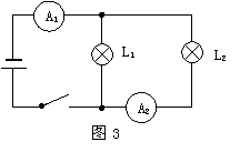 如图3所示,若当开关闭合时电流表A1的示数为0.6A,A2示数0.4A,则L1和L2中电流分别是: