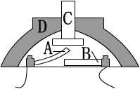 图中所示为一种按钮开关的构造截面图,图中C是按钮,D是外壳,A、B各有接线柱与电路相连接。其中