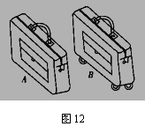 图12中,A、B是两只质量相同的旅行箱,________箱容易被推动,这说明了_____________________.