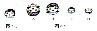 4. 如图4-3为小红同学的脸庞外形和大小,通过凸透镜看她的脸庞时,不可能看见的像为图4-4中的( )