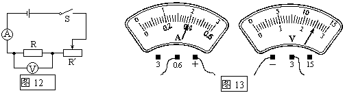 (3)王华在解决了电流表的异常后,将滑片移到某位置,观察到电压表、电流表的示数如图13所示,则他测出R的阻值为_ Ω。(2分)