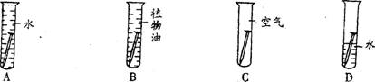 11.光亮的铁钉在下面几种情况中,最不容易生锈的是 ( )