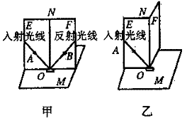 (1)如图甲所示,当E、F在同一平面上时,让入射光线AO沿纸板E射向镜面,在F 上可以看到反射光线OB.请你在图上标出反射角.并回答反射角和入射角的关系是:
