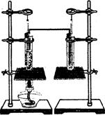 (4分)同学们学习了汽化和液化的知识后,知道汽化和液化间有联系.便就图示装置进行了对比实验.在两个大试管中分别加入1/3的水,给左边试管加热.把水沸腾产生的水蒸气,引到右边试管的冷水中.于是同学们可同时“观察”到水的汽化和液化过程.请回答下列各问.(左管中始终保持有水情况)