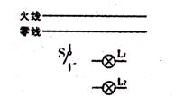 在图所示的家庭电路中,L1、L2是两盏额定电压均为220V的电灯,要求用开关S同时控制这两盏灯,并使这两盏灯都能正常发光。请将电灯和开关正确连入电路。