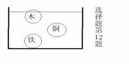 12.木球、铜球、铁球一起放在盛水的容器中,静止时如图所示,由此可以判定( )