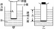 ⑵如图甲,当秤盘上不放物体时,应在小筒A处标出该浮力秤的 刻度.