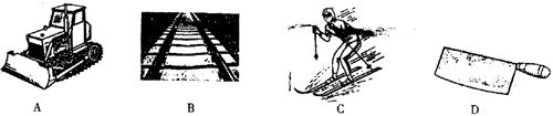 A.推土机上安装两条履带 B.铁轨铺在枕木上 C.用滑雪板滑雪 D.把刀刃磨薄