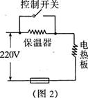 8.图2所示为电饭锅的原理图,当控制开关闭合时电饭锅处于加热煮饭状态,此时功率为1000W,饭熟后,控制开关自动断开,电饭锅处于保温状态.若此时电饭锅的总功率为100W,(假设电阻值不随温度的变化而变)则电热板的电阻为______Ω,保温器的电阻为____Ω.