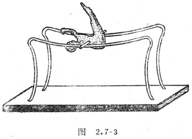1. 取两根长28厘米的粗铁丝,弯成如图2.7-3所示的形状,端都锉尖,固定在15