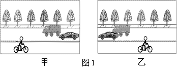 小强在马路边上拍街景照片,连续拍了两张,如图1甲、乙所示。如果以轿车为参照物,树是向___________运动的,卡车向___________运动;如果以骑自行车的人为参照物,树是向______________运动。(填“左”或“右”)