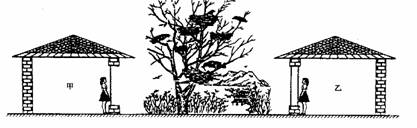 如图所示,几只小鸟在树上“唱歌”,一个听觉良好的女孩在一间门窗紧闭的甲房间内,靠近单层玻璃她能听到室外鸟的“歌声”;她到另一门窗紧闭的乙房间内,靠近双层玻璃(双层玻璃的夹层内抽成真空),她却几乎听不到室外鸟的“歌声”。