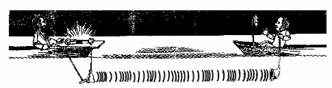 2.第一次测定声音在水中的传播速度是1827年在日内瓦湖上进行的,两只船相距 14 km,在一只船上实验员向水里放一口钟,当他敲钟的时候,船上的火药同时发光;另一只船上的实验员向水里放一个听音器,如图所示,他看到火药发光后10 s听到了水下的钟声.计算一下水中的声速是多大?