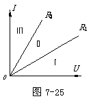 10.有两个阻值不同的定值电阻R1、R2,它们的电流随电压变化的I-U图线如图7-25所示.如果R1、R2串联后的总电阻为R串,并联后的总电阻为R并,则关于R串、R并的I-U图线所在的区域,下列说法中正确的是