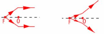 21. 下图中画出了光线通过透镜前后的传播方向,试在图中填上适当类型的透镜。