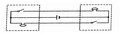 例3 A、B两个办公室彼此相距较远,为了互相传呼方便,他们准备在两个办公室各安装一个电铃,要使两个办公室的任何一方按下开关,都只能使对方的电铃发声。请你帮助他们设计一个符合要求的电路。