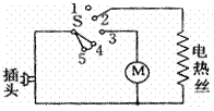 (2)图5-34是理发用的电吹风的电路,其中电热丝通电会发热,电动机通电会送风,若要使得电吹风送出热风,你应该选择开关S同时与哪两个触点接触( B )