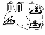 同一个木匣子上,A、B、C、D、分别是连接两灯