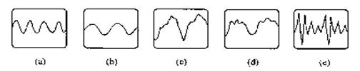 19.下图是几个声音的波形,图a和图b所示为两个不同音叉的波形,图c图d图e所示为小提琴、长笛和法国号的波形。