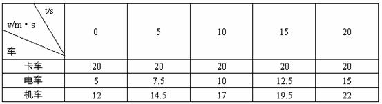 12.(太原市中考题)下表是卡车沿直线平稳行驶和电车、机车起动过程中各个不同时刻的速度(从起动一段时间后开始计时),请你比较和分析表中的数据.