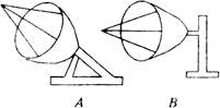 3.在某些大楼的顶上,安装有锅形的天线,即微波接收天线,下图中的两只天线朝着不同的方向,一只是用来接收通信卫星的,另一只是接收地面微波站的,你能判断哪只是接收通信卫星的微波天线吗?请说出你的理由。