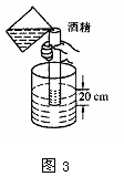 8.如图3所示,一个两端开口的直圆筒下端放-个轻质塑料薄片,把薄片压入水下20cm处.若从简口缓慢地往筒中倒入密度为0.8×103kg/m3的酒精,当塑料片恰好掉下时,酒精深度为_______________________