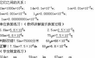 1km=1000m=103m; 1dm=0.1m=10-1m; 1cm=0.01m=10-2m; 1mm=0.001m=10-3m 1μm=0.000001m=10-6m; 1nm=0.000000001m=10-9m