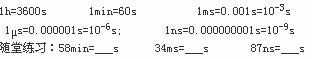(1) 国际单位制中时间的单位是秒(s)。 (2) 认识时间单位的符号:小时(h)、分(min)、秒(s)、毫秒(ms)、微秒(μs)、纳秒(ns)