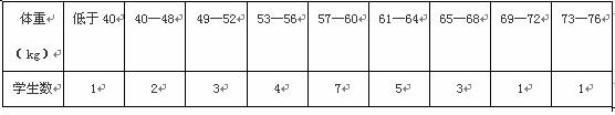 2、下表是某班男生以体重相差3公斤为一组的统计资料