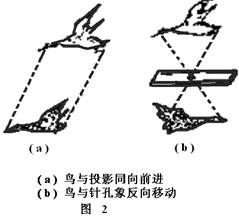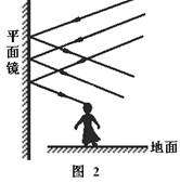 墨家学派在其所著《墨经》中首先研究了光的反射.《经说》:“景:日之光,反烛人,则景在日与人之间”.通常日光照人之影在来光方向的另一侧,但若日光经平面镜反射之后再照人体,则影落在太阳与人体之间了.这是一个演示光线反射的绝好实验,如图2所示.《墨经》还研究了平面镜成像.《经下》21条:“临鉴而立景倒.……”这里的“鉴”指平面铜镜,意思是说人若俯临镜子立着(平面镜水平放置),则所成之像是头部朝下颠倒的.《墨经》还描述了平面镜成像种种,指出像的形状、颜色、远近以及正倒都与物体相对称;也指出若物体移动像亦移动,物体距镜面近了像也随之变近,反之亦然.