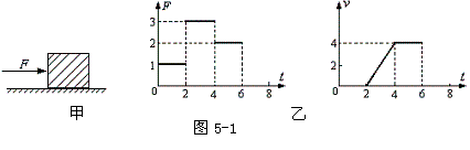 [例5](2005 泰安)如图5-1甲所示,放在水平地面上的物体,受到方向不变的水平推力F的作用,F的大小与时间t的关系和物体运动速度v与时间t的关系如图5-1乙所示.由图象可知当t=1s时,物体处于 状态,物体受到的摩擦力为 N. t=5s时,物体受到的摩擦力为 N.
