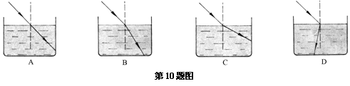 10.一束光线从空气斜射入水中,下列有关折射的光路图正确的是( )