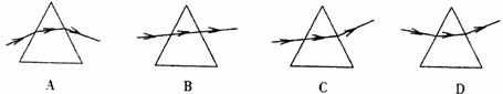 11..如图所示,表示一条光线从空气射入玻璃三棱镜并射出的光路图,其中正确的是 ( )
