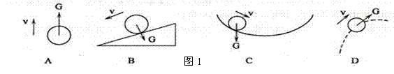6.关于物体所受重力的方向,图1中表示正确的是 ( )