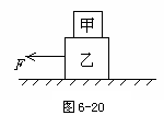 如图6-20所示,水平地面上有甲、乙两个物体叠放在一起,有一大小为10N的水平向左的拉力F作用在乙物体上后,甲、乙两物体仍保持静止状态。已知甲物体的质量为4kg,乙物体的质量为6kg,则物体甲受到的水平作用力为