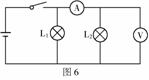10、小明在做电学实验时,按下图5连接一个电路,电源电压不变,闭合开关后,灯L1L2都发光,一段时间后,其中一盏灯突然熄灭,而电流表、电压表的示数都不变。产生这一现象的原因是( )