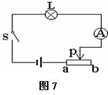15、如图7所示,闭合开关S后,灯泡L发光,现把滑动变阻器的滑片P向a端移动,则灯泡L的亮度与电流表示数的变化情况是:( )