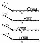 如图8-96所示,在“研究物体动能与哪些因素有关”的实验中,将A、B、C三小球先后从同一装置的hA、hB、hC高处滚下(mA=mB<mC,hA=hC>hB)推动纸盒运动一段距离后静止。