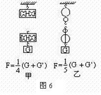 14.(4分) 按照图6所给的省力要求串绕滑轮组。图中G'为动滑轮的重量,F表示拉力,G表示物重(绳与滑轮之间的摩擦不计)。
