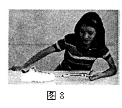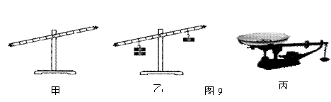 (5)如图9丙所示的案秤是个不等臂杠杆,请你根据杠杆的平衡条件,说明用几个不重的砝码就能平衡盘中重得多的货物的道理 。