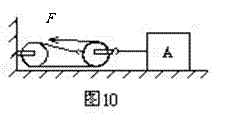 (5分)如图10所示,若拉力F=900N顿,物体A重1500N,不计滑轮重和绳与滑轮间摩擦。当绳子自由端移动3m,则沿水平方向匀速拉动物体A前进时,物体A与地面间摩擦力是多大,物体A移动多远 ?