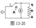 4. 如图13-20所示,是电吹风机送热风的工作电路,对应的额定功率为1100 W。将它接入到电压为220V电路中,正常工作(送热风)10 min,电吹风机消耗