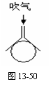 例 5 如图13-50,把一个乒乓球放在倒置的漏斗中间,向漏斗口吹气,会把乒乓球吹跑吗?实际正好相反,乒乓球会贴在漏斗上不掉下来,这是为什么?