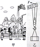 5.如图所示,升国旗的旗杆顶上安装滑轮(甲图)是为了___________,而塔吊中使用滑轮组(乙图)主要是为了__________。乙图中用104N的拉力F将重为1.8×104N的重物匀速竖直提升10m用了20s ,则滑轮组的机械效率是______,拉力F的功率是_______W。