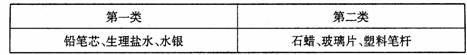 10、现有石蜡、铅笔芯、塑料笔杆、生理盐水、水银,小明将它们分成如下表所示两类,其分类依据是